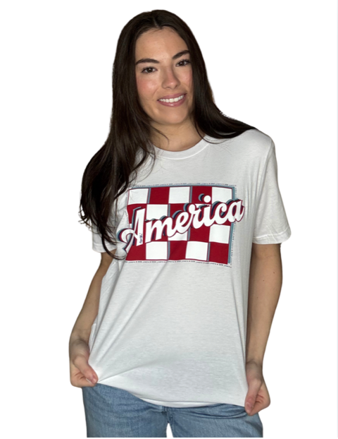 $ 39.00 USDAmerica CheckerBoard White Short Sleeve Tee.