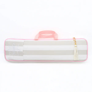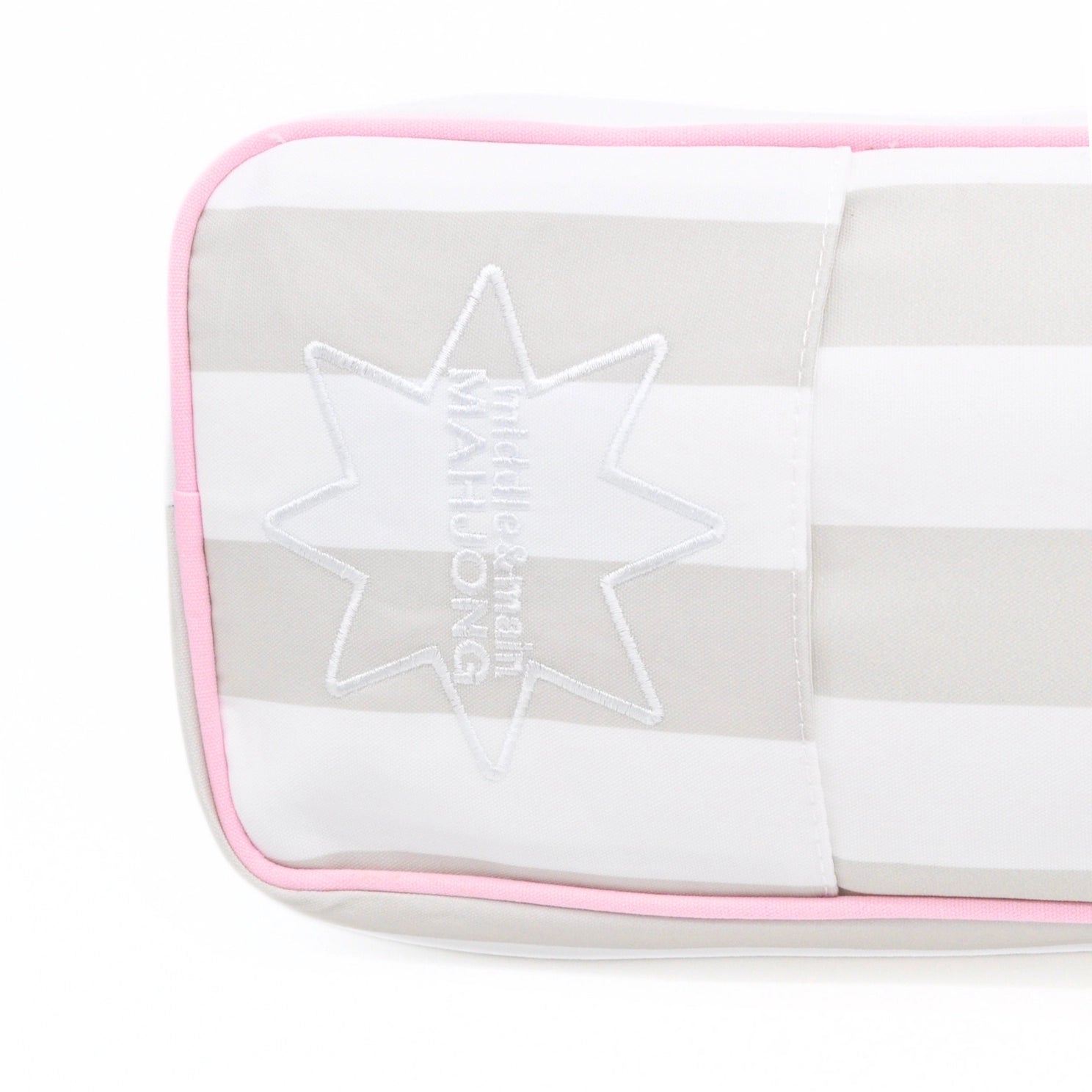 Organize your mahjong tools with refined elegance. This grey and white rack bag combines practical functionality with understated style, featuring dedicated compartments to keep your tiles secure and accessible during gameplay. The sophisticated color palette complements any setting, while the durable construction ensures your collection remains protected between games. An essential accessory for the discerning mahjong enthusiast.