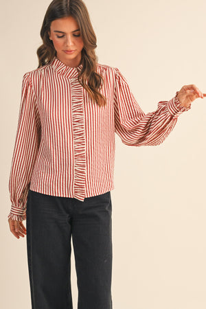 Striped Ruffled Button Down Long Sleeve Top